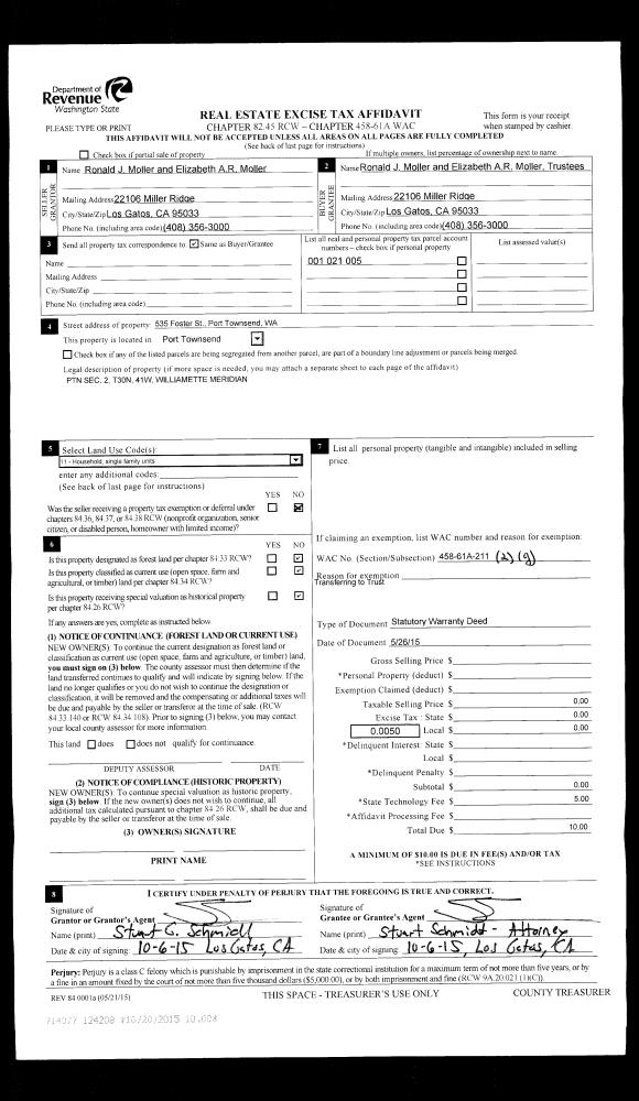 | Mailing Address: | ELIZABETH MOLLER TRUSTEE R & E MOLLER REV TRUST 1544 MADISON ST PORT TOWNSEND, WA 98368 | % Ownership: | 100.0000000000% |