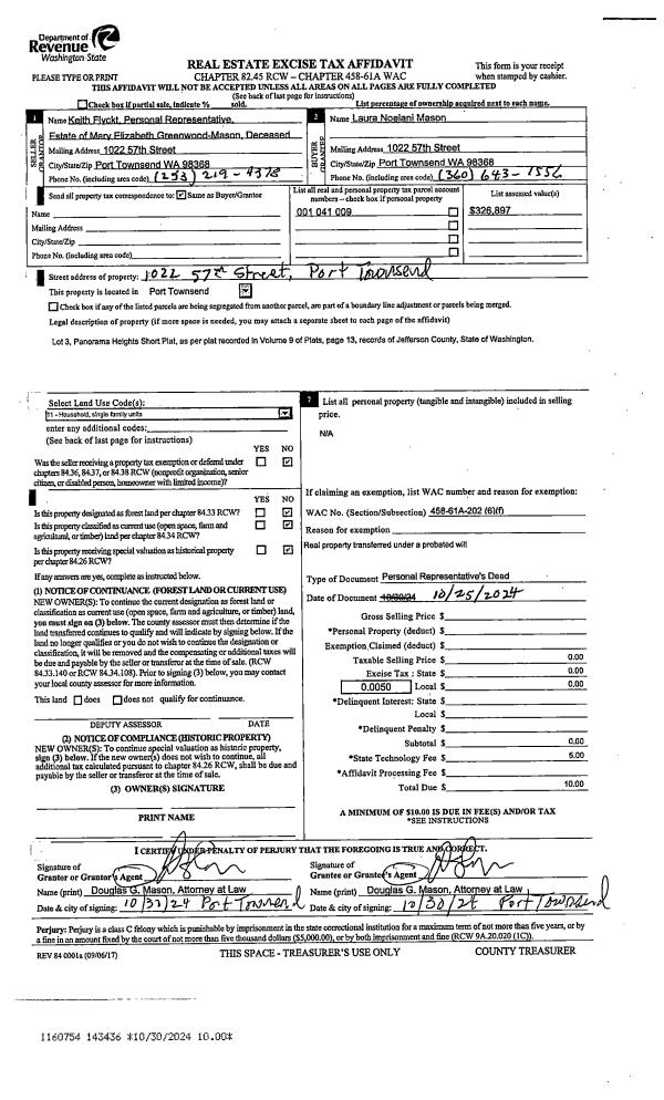| 1 | 10/25/2024 | PRD | Personal Representatives Deed | MARY E GREENWOOD MASON | LAURA N MASON | | | | 143436 | |