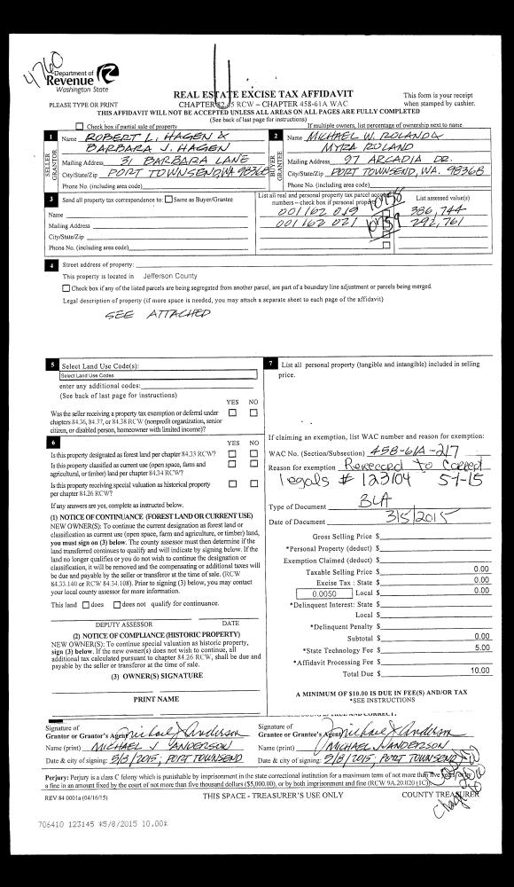 | 4 | 03/05/2015 | BLA | Boundary Line Adjustment | ROBERT L HAGEN | | | | | 123104 | |