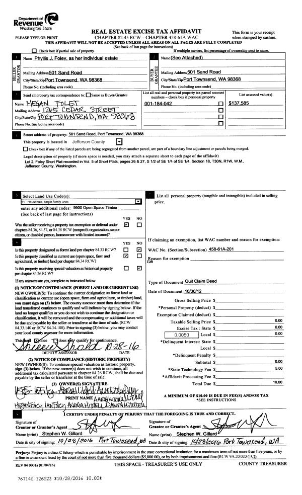 | 4 | 09/20/2005 | QCD | Quit Claim Deed | FOLEY, THOMAS A | FOLEY, PHYLLIS J | 0 | 0 | $0.00 | 104820 | 0 |