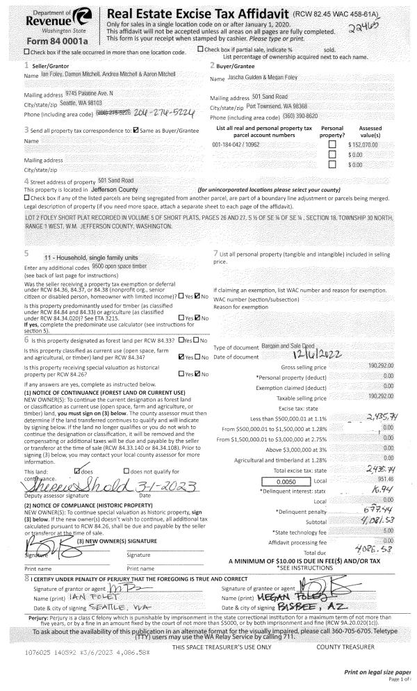 | 1 | 12/06/2022 | BSD | Bargain and Sale Deed | PHYLLIS J FOLEY | JASCHA GULDEN & MEGAN FOLEY | | | $190,292.00 | 140592 | |
