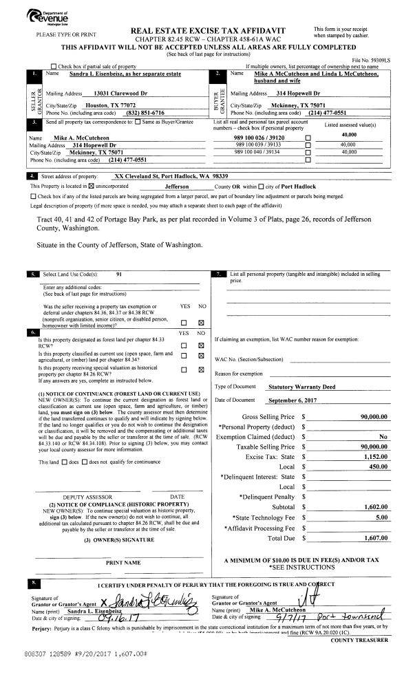 | Mailing Address: | 611 LANE DE CHANTAL PORT TOWNSEND, WA 98368-9262 | % Ownership: | 100.0000000000% |