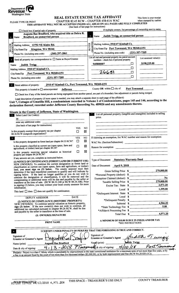 | 1 | 06/01/2018 | SWD | Statutory Warranty Deed | MARK R CLARK | DAVID R & CAROLYN S PETRO | | | $787,000.00 | 130278 | |