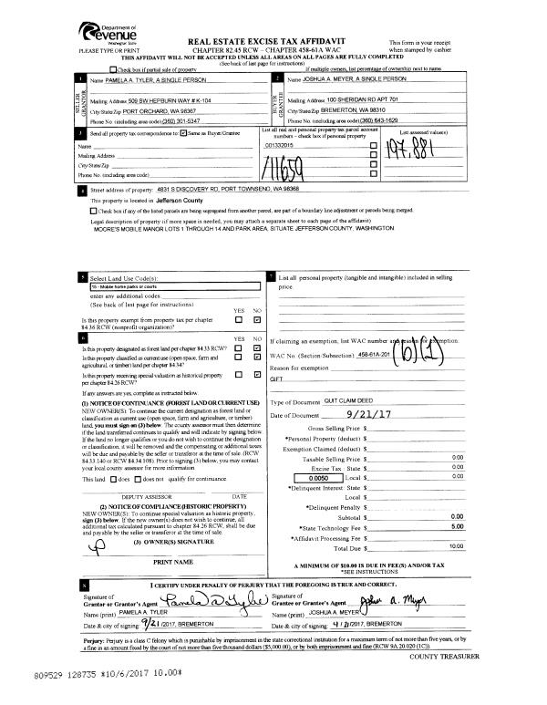 | 2 | 10/06/2017 | QCD | Quit Claim Deed | | | | | | 128735 | |