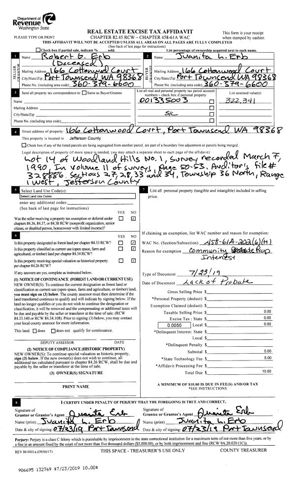 | 2 | 07/23/2019 | LOP | Lack of Probate | ROBERT ERB | JUANITA L ERB | | | | 132769 | |