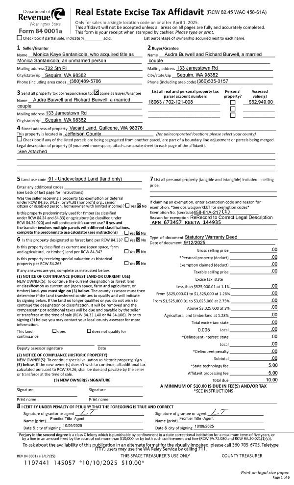 | 1 | 09/25/2025 | QCD | Quit Claim Deed | MKP CONSTRUCTION LLC | COHESION LLC | | | | 145090 | |