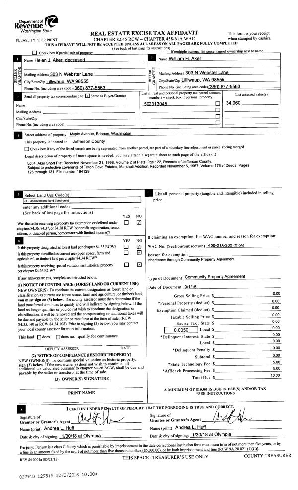 | Mailing Address: | 181 RAVEN RD PORT TOWNSEND, WA 98368-9433 | % Ownership: | 100.0000000000% |