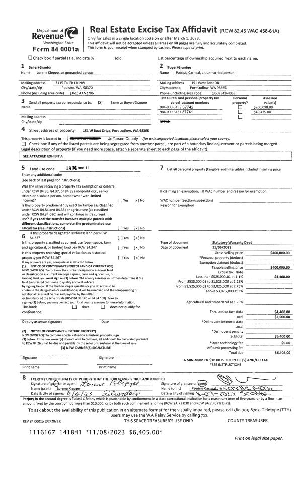 | 1 | 09/22/2023 | SWD | Statutory Warranty Deed | NELSON FAMILY TRUST | DEWITT FAMILY TRUST | | | $2,250,000.00 | 141640 | |