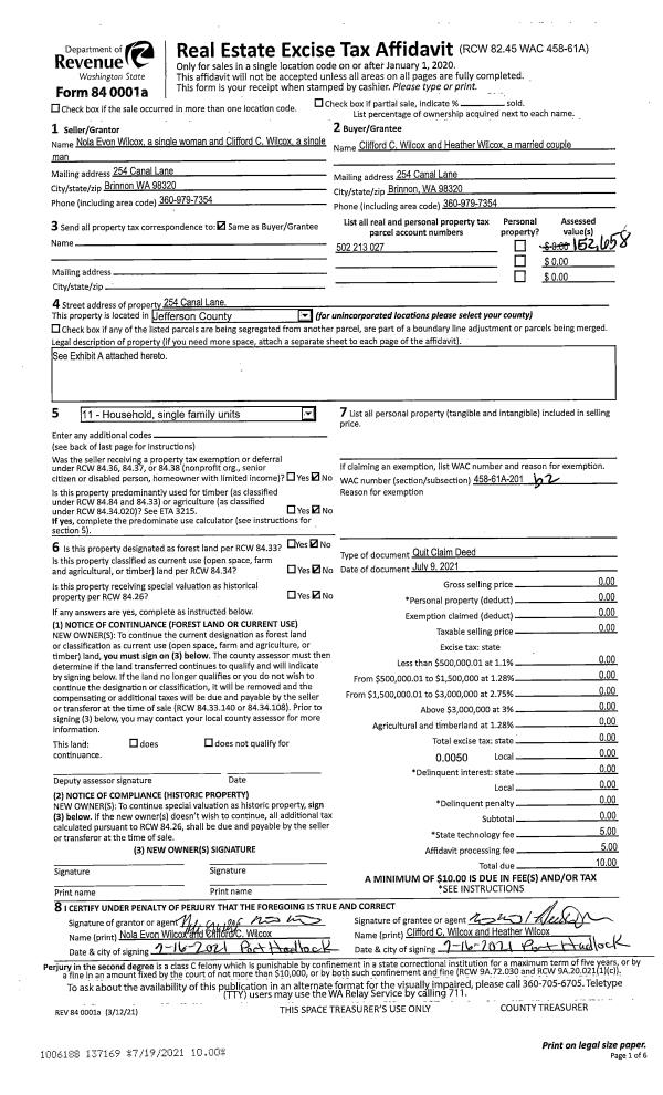 | Mailing Address: | RUTH OLIVE DUNLOP TRSTE DUNLOP REV LIVING TRUST 741 OLD GARDINER RD SEQUIM, WA 98382-8701 | % Ownership: | 100.0000000000% |