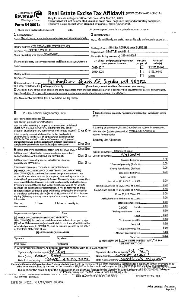 | 1 | 04/04/2024 | BLA | Boundary Line Adjustment | GARRETT BANDY | GARRETT BANDY | | | | 145251 | |