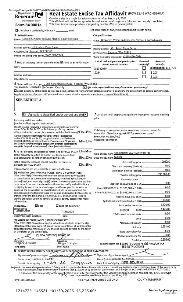 | 1 | 01/26/2026 | SWD | Statutory Warranty Deed | LONNIE R & LARA PLECHER | GREGORY O & GINGER L VOYLES | | | $295,000.00 | 145581 | |