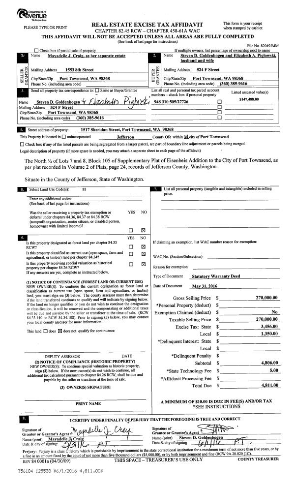 | 3 | 08/02/2013 | SWD | Statutory Warranty Deed | | | | | | 120093 | |
