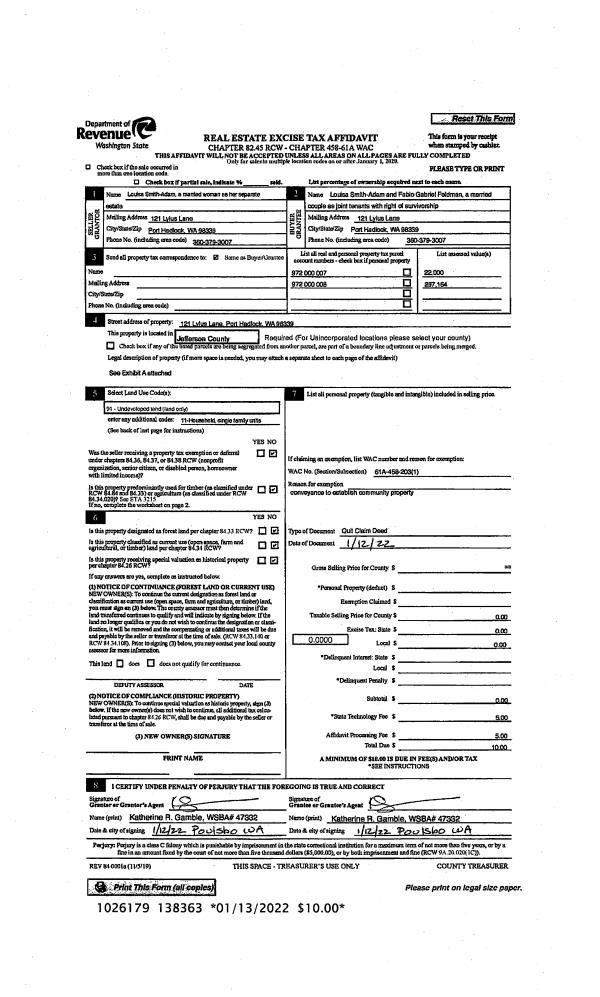 | 1 | 01/01/2022 | MISC | MISC | | WEYERHAEUSER TIMBER HOLDINGS,INC | | | | 138401 | MINERAL RTS TRANSFER |