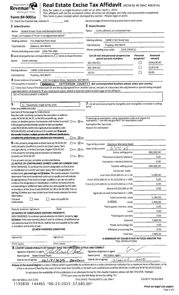 | 1 | 06/17/2025 | SWD | Statutory Warranty Deed | THULIN TRUST | CURTIS LOHRMAN | | | $480,000.00 | 144465 | |