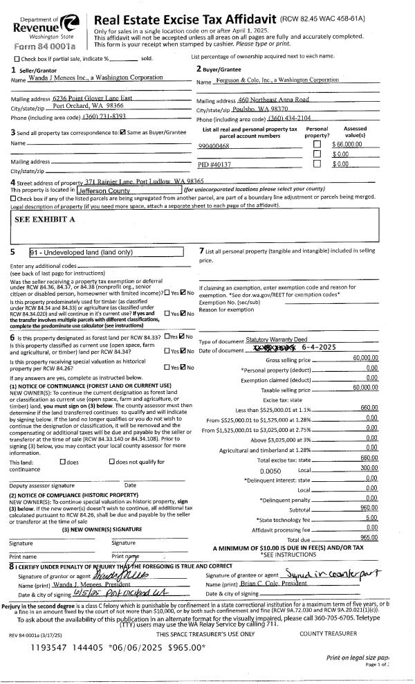 | 1 | 06/17/2025 | SWD | Statutory Warranty Deed | THULIN TRUST | CURTIS LOHRMAN | | | $480,000.00 | 144465 | |
