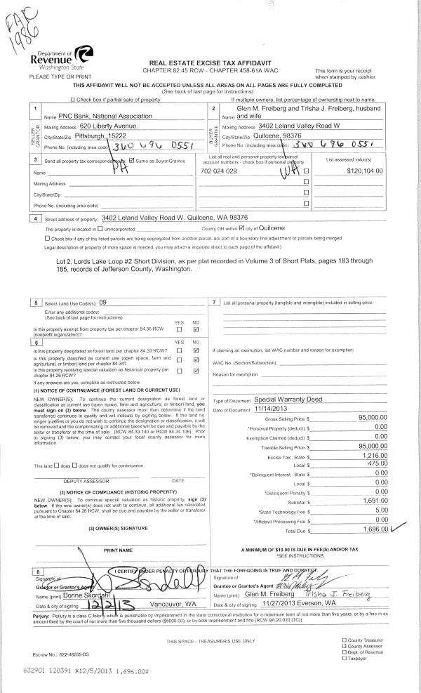 | 1 | 06/12/2013 | SWD | Statutory Warranty Deed | GLEN ELLINGSON | CODY SCHLEICH | | | $65,000.00 | 119532 | |