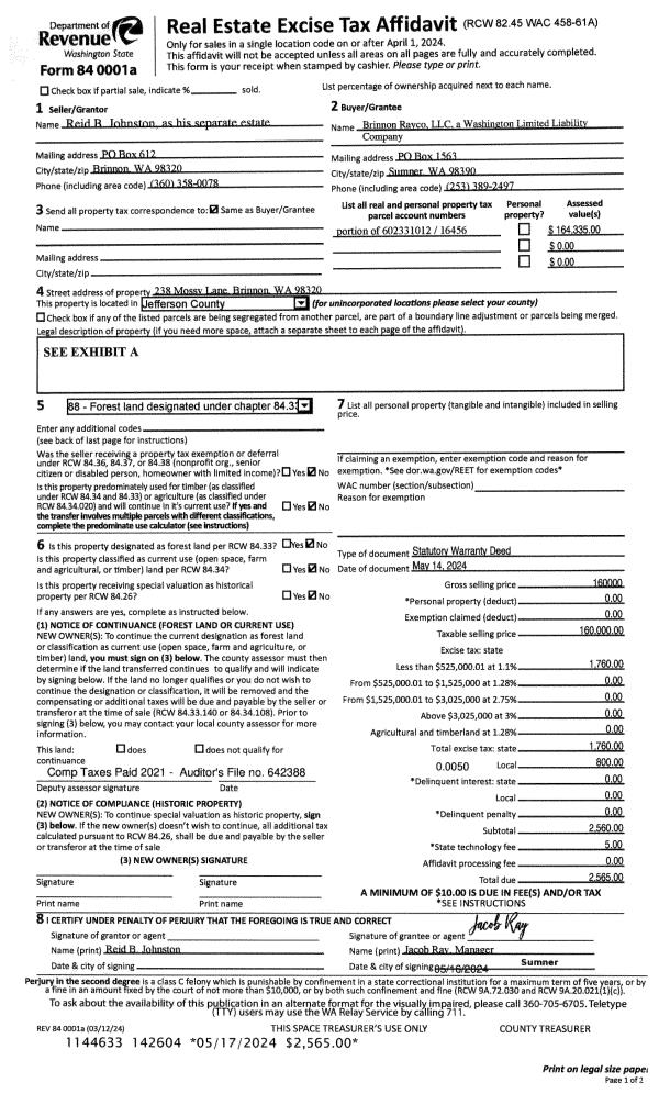 | Mailing Address: | PO BOX 612 BRINNON, WA 98320-0612 | % Ownership: | 100.0000000000% |