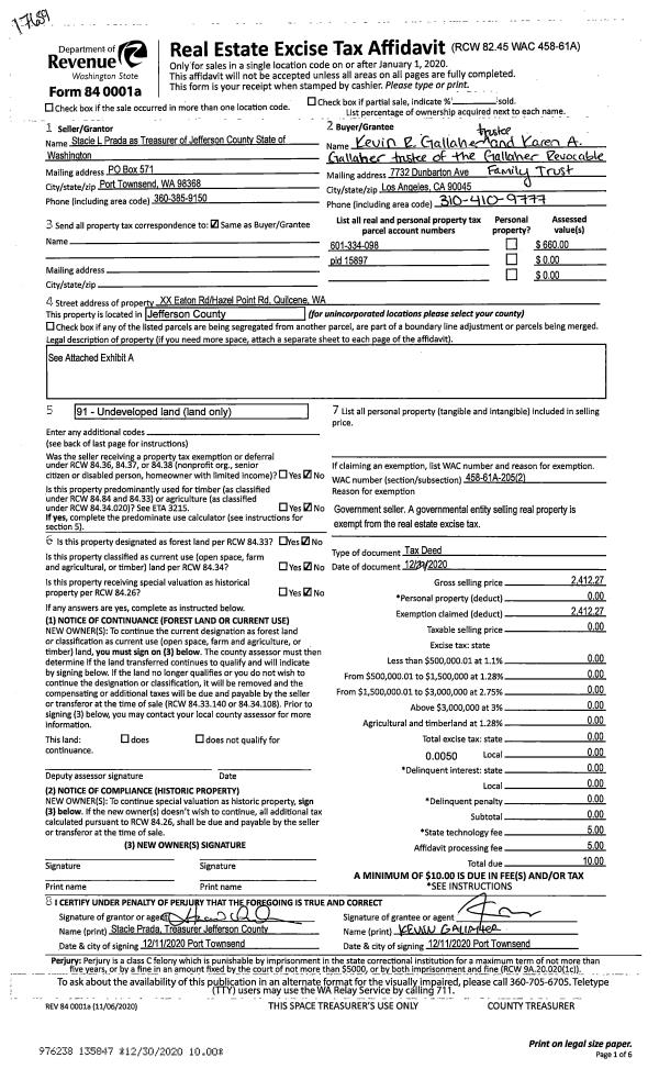 | 1 | 12/23/2020 | SWD | Statutory Warranty Deed | CLAUDETTE M CROWELL | ERIC L & DENA M FREDRICKSON | | | $335,000.00 | 135769 | |