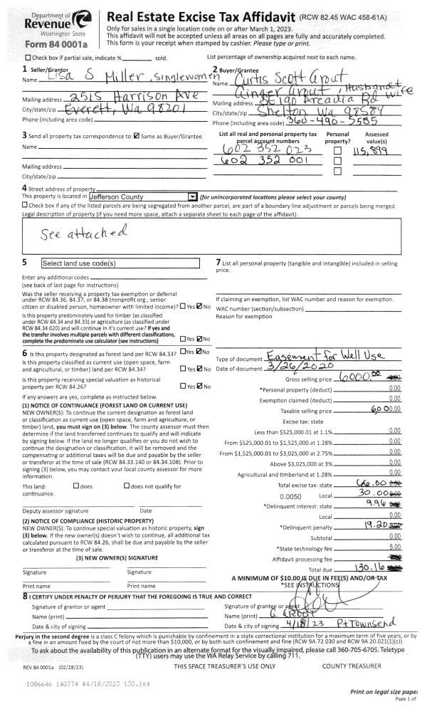 | 1 | 03/26/2020 | EASE | Assignment of Easement | | SCOTT GROUT | | | | 140774 | WELL EASE |