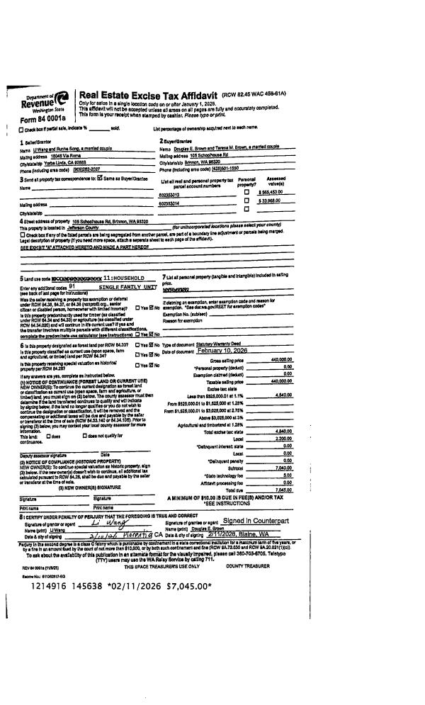 | 1 | 02/10/2026 | SWD | Statutory Warranty Deed | LI WANG & RUNHE SONG | DOUGLAS E & TERESA M BROWN | | | $440,000.00 | 145638 | |