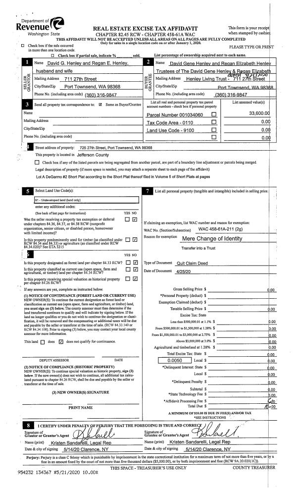 | 1 | 07/21/2020 | SWD | Statutory Warranty Deed | CURTIS COUSINS | ASTRAL FARMS LLC | | | $266,000.00 | 134719 | |