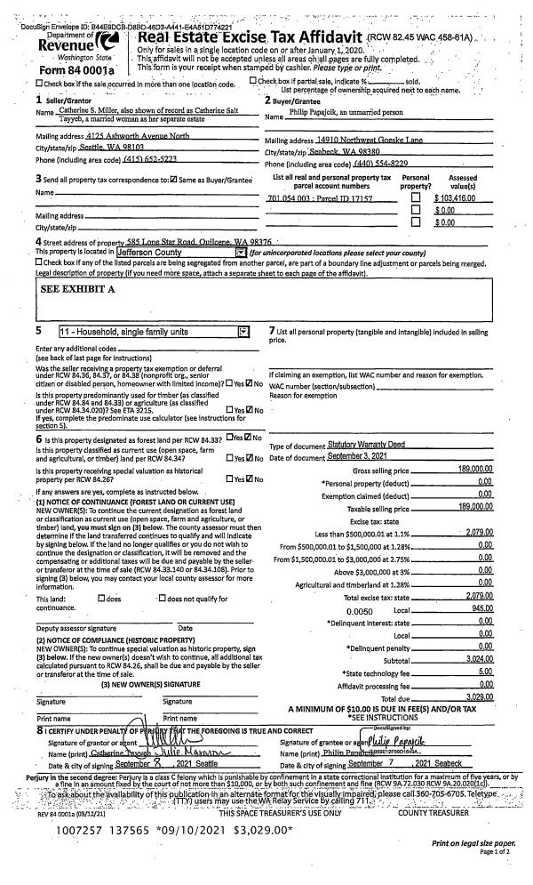 | 1 | 09/03/2021 | SWD | Statutory Warranty Deed | CATHERINE TAYYEB | PHILIP PAPAJCIK | | | $189,000.00 | 137565 | |