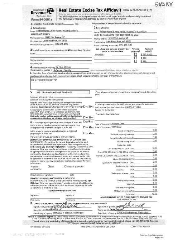 | 1 | 1571A | Terr/Mtn/No View <6 Acres | 4.7100 | 205167.60 | 0.00 | 0.00 | 0.00 | $52,811 | $0 |