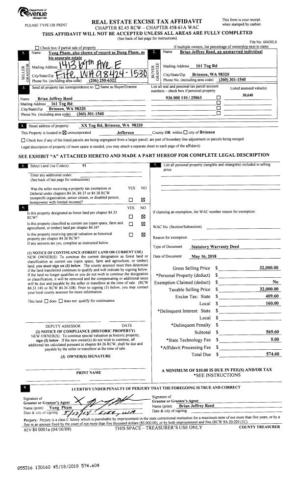 | 1 | 12/20/2021 | SWD | Statutory Warranty Deed | MOLLY MCGEE | AMK REVOCABLE TRUST | | | $85,000.00 | 138259 | |