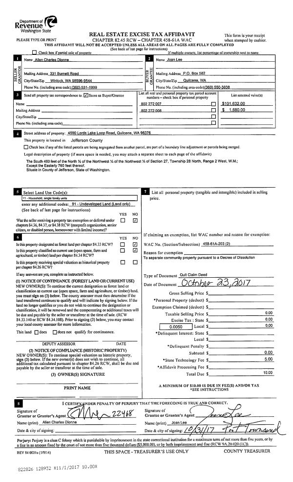 | 2 | 12/06/2017 | QCD | Quit Claim Deed | JANE DAVID | JANE & GERALD DAVID REVOCABLE LIV TRUST | | | | 129160 | |
