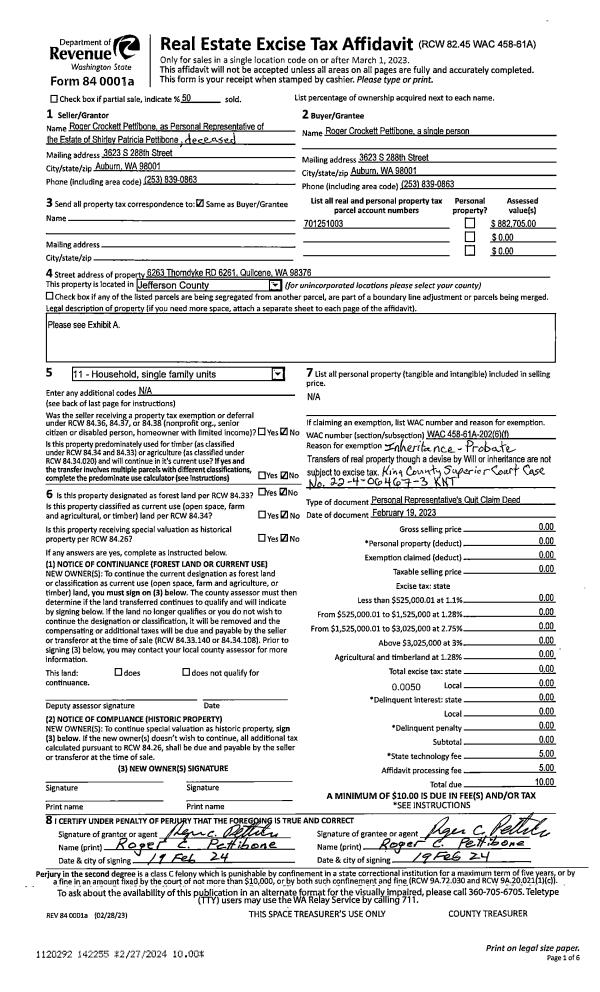 | 2 | 02/01/2023 | PRD | Personal Representatives Deed | ROGER C PETTIBONE PERSONAL REPRESENTATIVE | ROGER C PETTIBONE | | | | 140657 | |