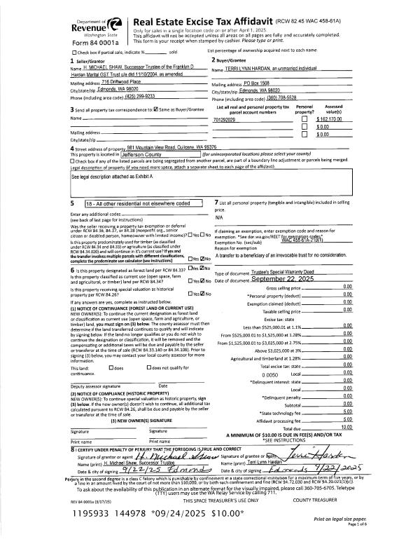 | 2 | 09/22/2025 | TRED | Trustee Deed | FRANKLYN D HARDAN MARITAL GST TRUST | TERRI L HARDAN | | | | 144978 | |
