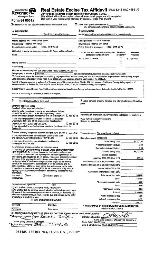 | 4 | 05/06/2005 | SWD | Statutory Warranty Deed | GUSTAVSON, GLENN O/BEVERL | VANDEWGHE, ROBERTUS/JACOBA | | | $59,000.00 | 103471 | 0 |