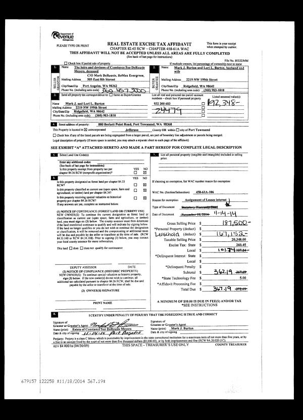 | 4 | 2350-1515F | Low Bank Waterfront along Dabob Bay | 0.0000 | 0.00 | 0.00 | 0.00 | 0.00 | $230,000 | $0 |