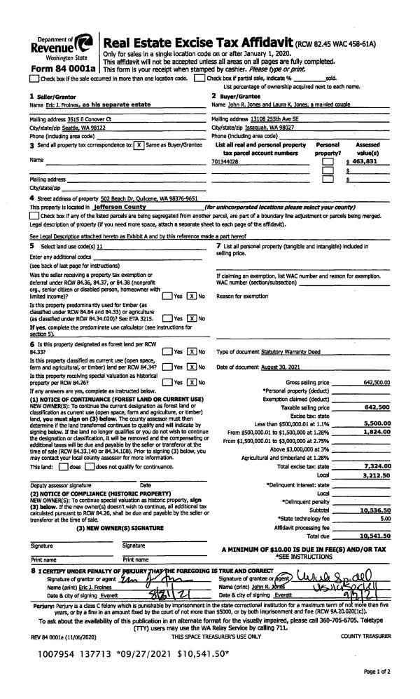 | 1 | 08/30/2021 | SWD | Statutory Warranty Deed | ERIC J FROINES | JOHN R & LAURA K JONES | | | $642,500.00 | 137713 | |