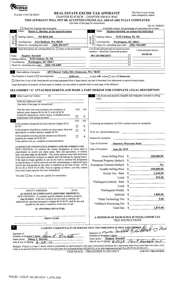 | 1 | 04/17/2019 | SWD | Statutory Warranty Deed | DENNIS T BATEY | JOLENE KIEFFER | | | $135,000.00 | 132150 | |