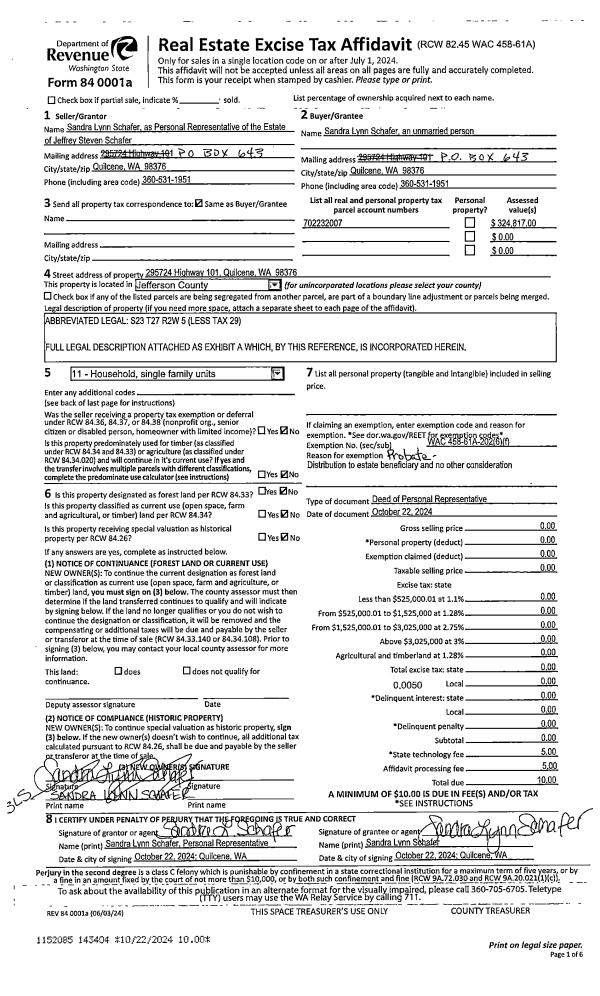 | 2 | 10/22/2024 | PRD | Personal Representatives Deed | SANDRA L SCHAFER PERSONAL REPRESENTATIVE | SANDRA L SCHAFER | | | | 143404 | |