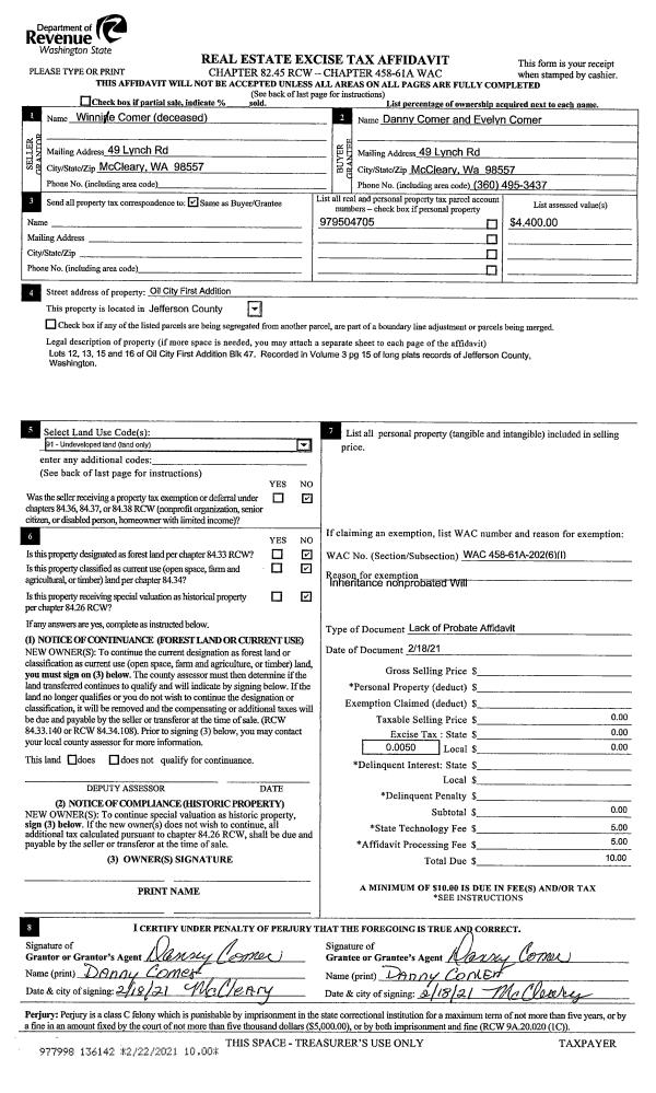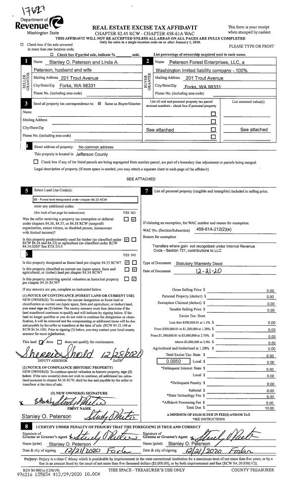 | 5 | 08/21/2002 | SWD | Statutory Warranty Deed | CALVIN F ROGERS | PEV ENTERPRISES INCORPORATED | 0 | 0 | $0.00 | 95383 | 0 |