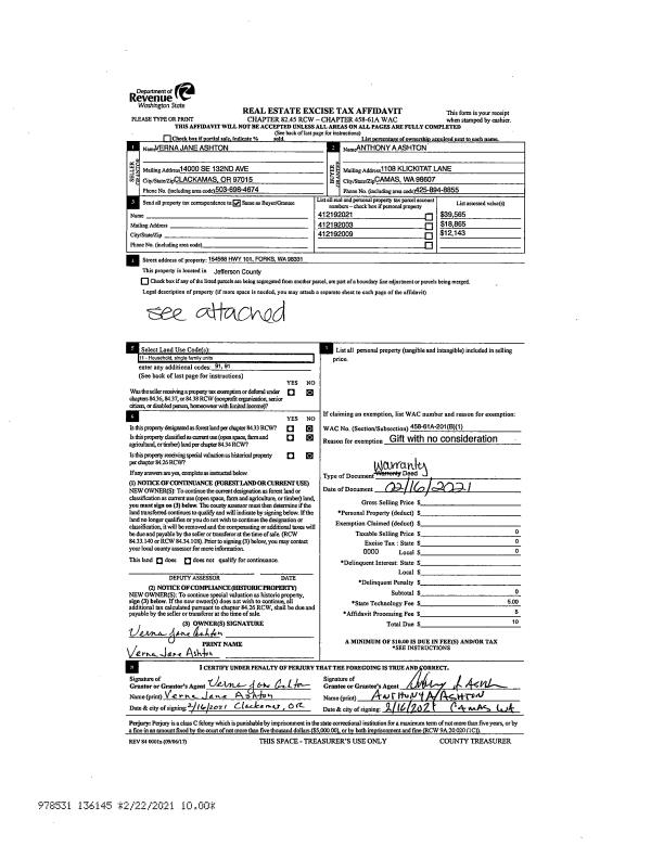 | 1 | 07/28/2021 | SWD | Statutory Warranty Deed | SEABIENT CORPORATION | PENINSULA HOST LLC | | | $1,000,000.00 | 137294 | |