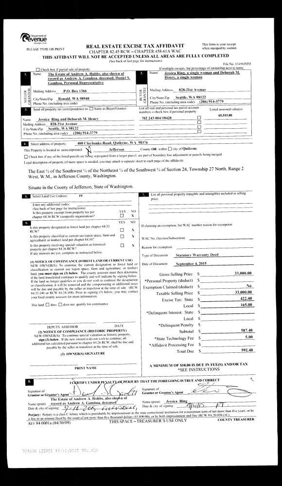 | 1 | 09/04/2015 | SWD | Statutory Warranty Deed | ANDREW A HOBBS | JESSICA RING | | | $33,000.00 | 123951 | |