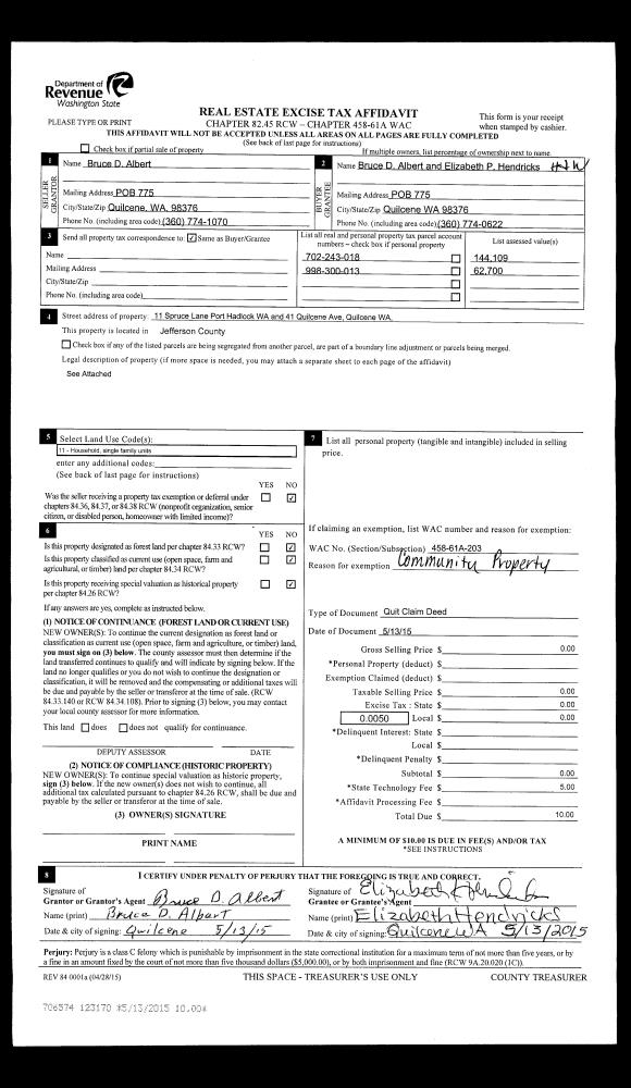 | 1 | 05/13/2015 | QCD | Quit Claim Deed | | | | | | 123170 | |