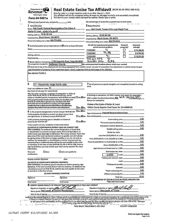 | 1 | 12/21/2023 | PRD | Personal Representatives Deed | MARILYN LEWIS | LEWIS RANCH TRUST | | | | 142097 | |