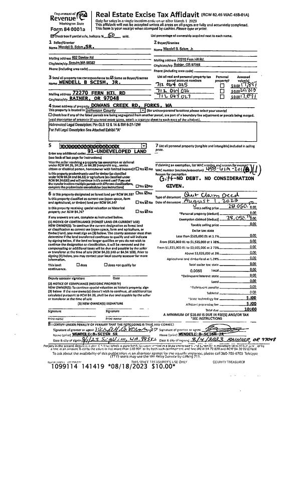 | 2 | 08/01/2023 | QCD | Quit Claim Deed | WENDELL B SCISM SR | WENDELL B SCISM JR | | | | 141419 | |