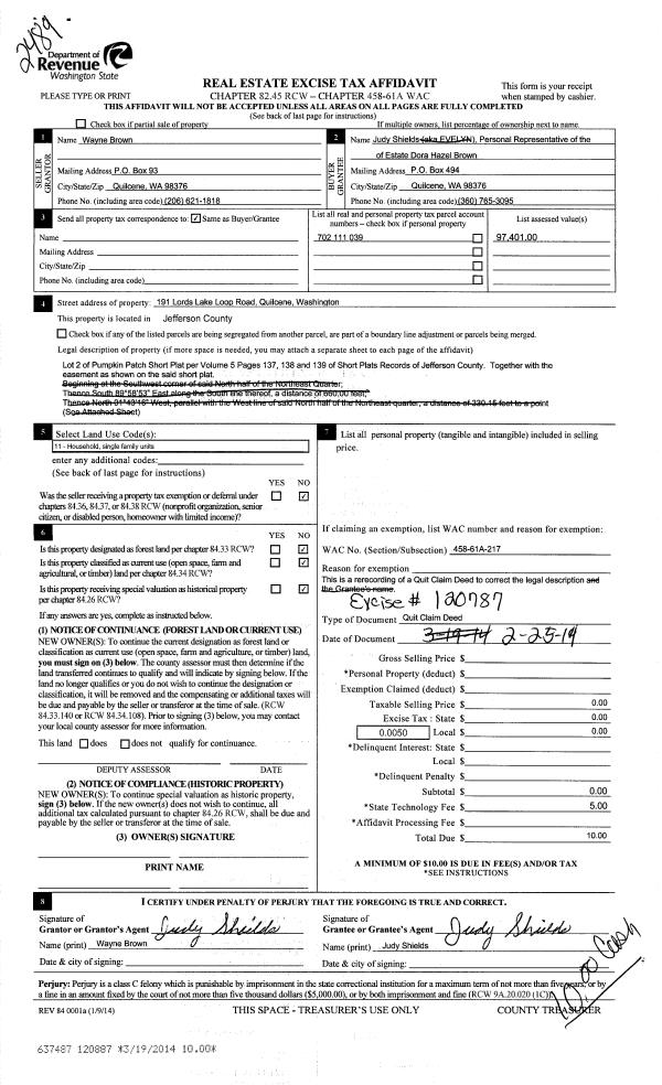 | 4 | 08/04/2013 | BSD | Bargain and Sale Deed | RAYONIER TMBLND OPER CO L P | TIMBERLANDS HOLDING COMPANY WASHINGTON INC | | | | 119758 | |