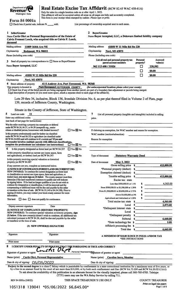 | Mailing Address: | PO BOX 1220 PORT TOWNSEND, WA 98368-0920 | % Ownership: | 100.0000000000% |