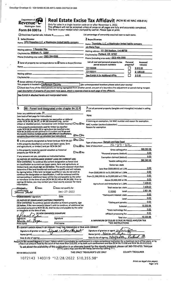 | 1 | 12/27/2022 | BSD | Bargain and Sale Deed | OPG PROPERTIES LLC | THORNDYKE LLC | | | $580,392.00 | 140319 | |