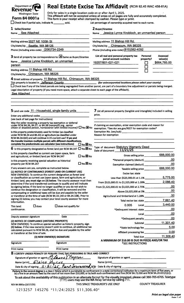 | 1 | 11/21/2025 | SWD | Statutory Warranty Deed | RACHEL J ADAMIAN | JESSICA L KNOBLOCH | | | $688,000.00 | 145276 | |