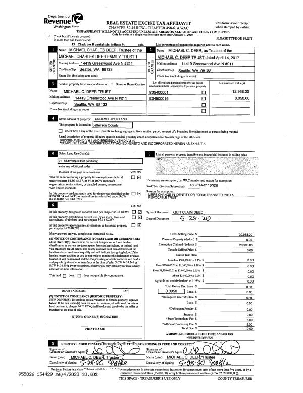 | Mailing Address: | 285573 US HIGHWAY 101 QUILCENE, WA 98376-9513 | % Ownership: | 100.0000000000% |
