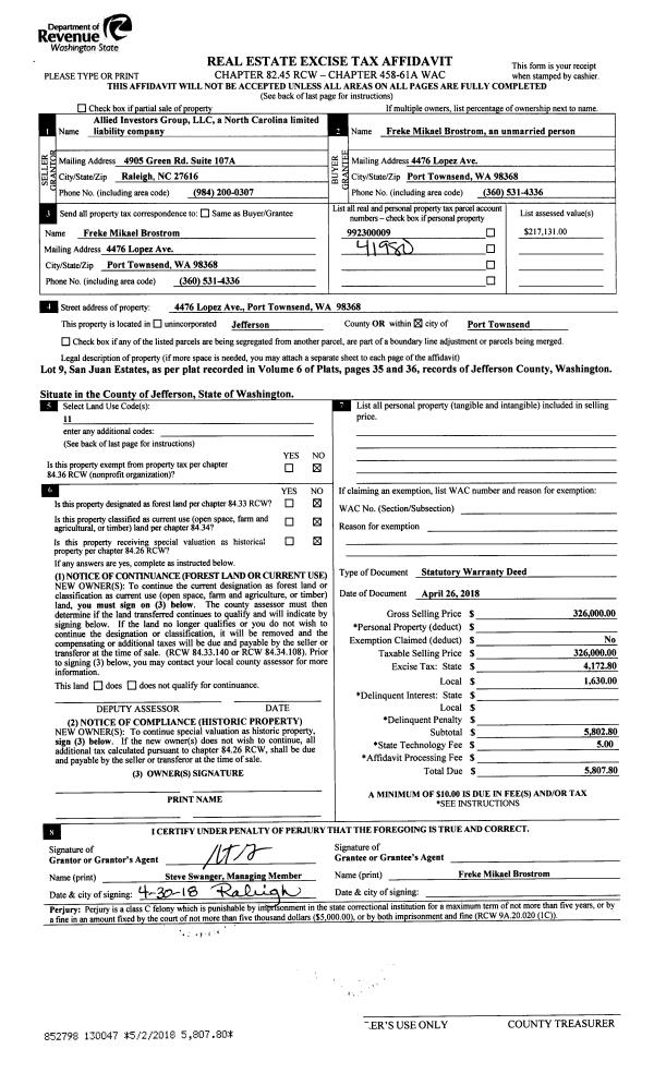 | Mailing Address: | 1033 LAWRENCE ST PORT TOWNSEND, WA 98368-6523 | % Ownership: | 100.0000000000% |