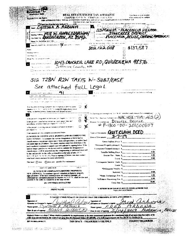 | 3 | 03/07/2019 | QCD | Quit Claim Deed | FRED L ARBONA JR | FRED ARBONA JR | | | | 132323 | |