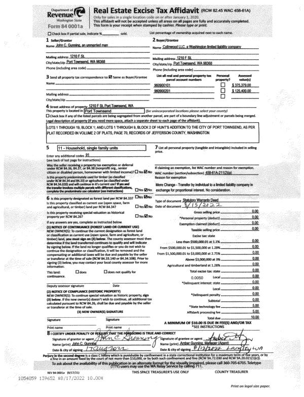 | 2 | 12/01/2022 | BSD | Bargain and Sale Deed | GREEN CROW CORPORATION | OLYMPIC PENINSULA TIMBERLANDS LLC | | | $6,589,142.00 | 140225 | |
